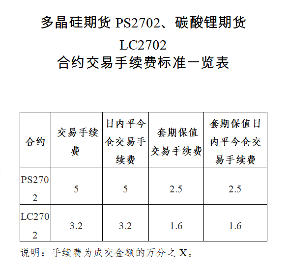 上证报中国证券网讯 广州期货来去所2月9日公告更始多晶硅期货PS2702、碳酸锂期货LC2702合约来去手续费。